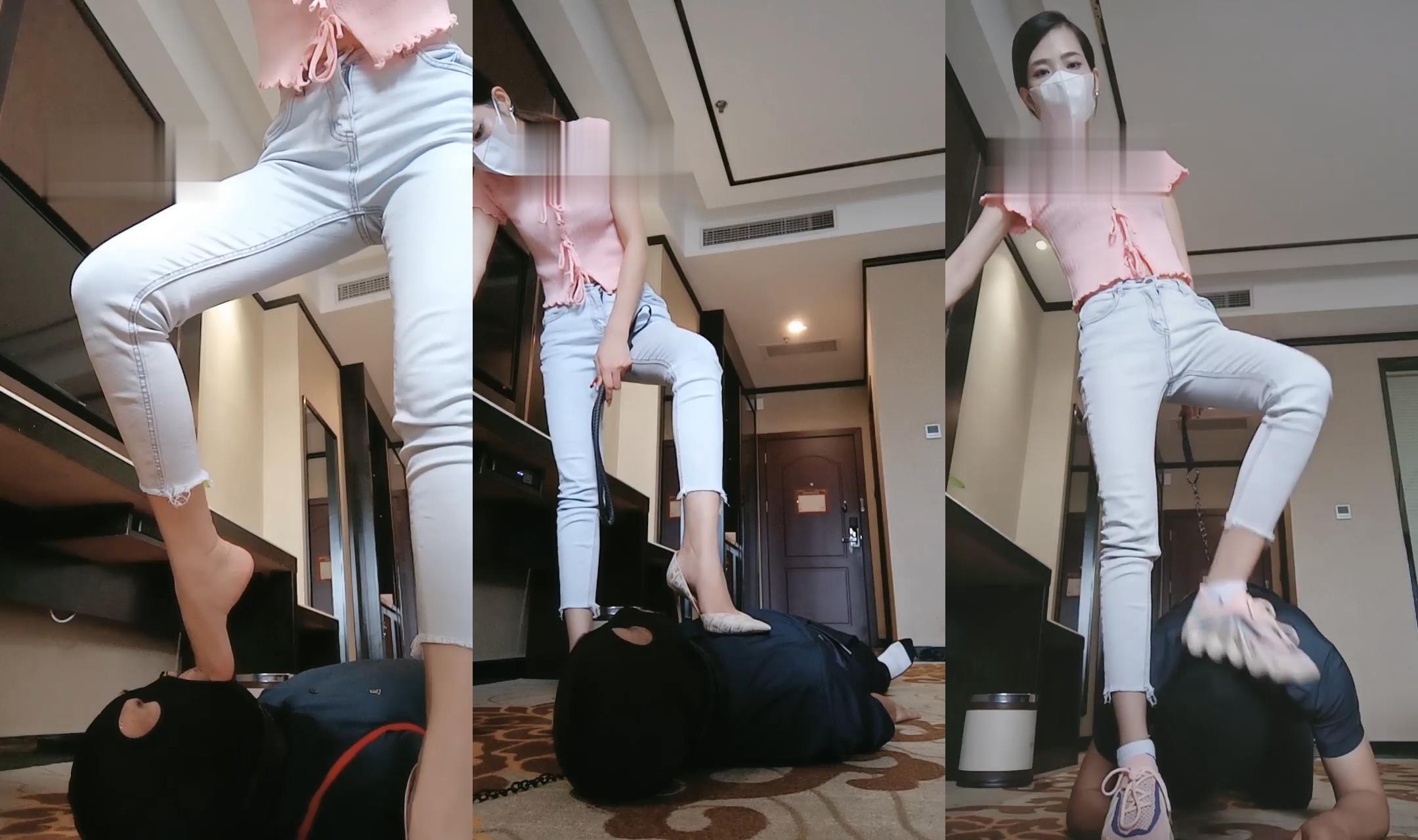 晚晚 玩两个奴 鞭打 踩踏 舔脚