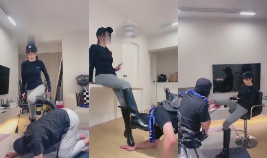 兔美美-废旧办公室里骑马